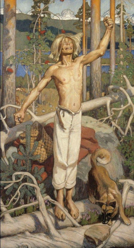 His uncle Untamo kills most of the family and enslaves Kullervo. Who then destroys everything he touches, every task that he’s given, not from incompetence, but from rage.